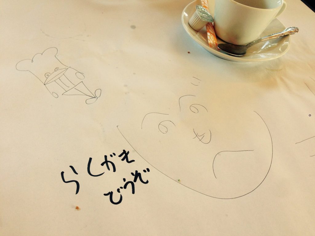 以前、テーブルクロスにめっちゃ上手なイラストを描かれたお客様がいました。 「フェデリコ君をマスターしました」とコメントがあり、多様なフェデリコ君をかいてくれていました。 そして、また再訪。 絵をズバズバ〜と描いていたので同じ人だとわかりまし...